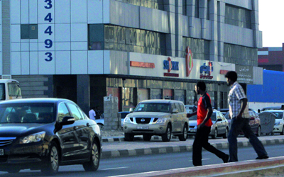 شابان يعبران طريقاً مزدحماً بالمركبات في الشارقة، من دون أن يلتفتا إلى التحذيرات المستمرة من خطورة اجتياز الطريق من الأماكن غير المخصصة للمشاة.