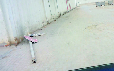 اقتلع أحد الأشخاص لوحة إرشادية من مكانها وألقاها بجوار أحد الأبنية، ما شوّه المنظر العام، فضلاً عن أنه حرم المارة حقهم في الاطلاع عليها لمعرفة اتجاه الشارع، لذا يتعين على الجهات المعنية تنفيذ حملات توعية للمواطنين والمقيمين لحثهم على الحفاظ على اللوحات الموجودة في الشوارع حتى يستفيد منها المارة والسائقون.