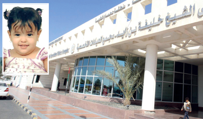 والد هيا يصطحبها يومياً إلى مستشفى خليفة لتغذيتها بالمحاليل. تصوير: مصطفى قاسمي