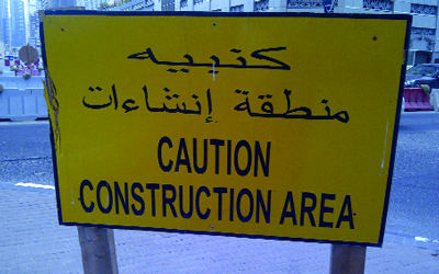 وضعت جهة لافتة تحذيرية في منطقة المارينا في دبي، احتوت على خطأ في اللغة العربية ، إذ كتبت «كنبيه» بدلاً من «تنبيه» وهي واحدة من لافتات كثيرة في المنطقة نفسها تحتوي على أخطاء في اللغة العربية، ولذا يتعين على الجهات المعنية مراجعة هذه اللافتات قبل وضعها في الشوارع للتأكد من دقتها.