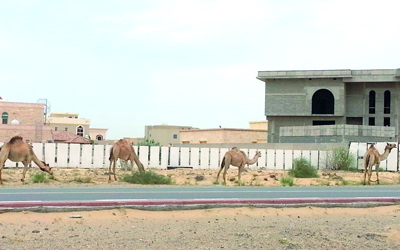 تهدّد جمال سائبة حياة السائقين في منطقة النوف بالشارقة، إذ تركها أصحابها ترعى على جانبي الطريق، من دون مراعاة لخطورة هذا الأمر، ولذا يتعين على الجهات المعنية في الإمارة اتخاذ الإجراءات اللازمة لمنع وصول الحيوانات السائبة إلى الطريق، حفاظاً على حياة قائدي المركبات.