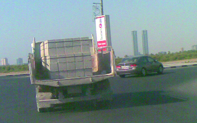 تستخدم شركات مقاولات شاحنات قديمة تفتقد أدنى معايير السلامة، على الرغم من استخدامها في نقل مواد بناء وطابوق وسيرها على الطرق السريعة، معرضة حياة رواد الطريق للخطر حال سقوط الطابوق، خصوصاً أن شركات مقاولات لا تربط الحمولة بشكل آمن، لذا يجب على الجهات المعنية توعية شركات المقاولات بضرورة الالتزام بأمن الطريق، وعدم نقل معدات أو مواد بناء دون ربطها حرصاً على السلامة العامة.