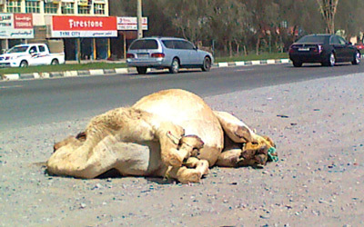 يتخلص ملاك عزب في رأس الخيمة من الحيوانات النافقة على جانبي الشوارع، الأمر الذي يؤدي إلى تحولها إلى جيفة وانبعاث روائح كريهة تزكم الأنوف، كما تهدد الصحة العامة بانتشار الأمراض والأوبئة وتشويه المنظر العام، لذا يجب على الجهات المعنية ضرورة توعية أصحاب العزب ومربي الماشية بخطورة إلقاء الحيوانات النافقة على الطرق، وتثقيفهم بالطرق الآمنة للتخلص من الحيوانات النافقة، حرصاً على البيئة العامة.