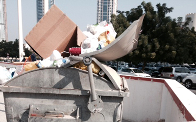 يعاني سكان في منطقة التعاون في الشارقة انبعاث روائح كريهة من حاوية جمع النفايات الموجودة أمام محطة بترول ايبكو القريبة من المدرسة الاسترالية، نتيجة تكدس القمامة في الحاوية مدداً طويلة من دون أن يتم تفريغها، فضلاً عن أن منظرها يشوه المنظر العام للمكان، مناشدين الجهات المعنية ضرورة الاهتمام بالمشكلة، وتفريغ حاويات القمامة بشكل منتظم، على غرار ما تفعله البلدية في مناطق أخرى، لم يعد سكانها يشكون تكدس النفايات.