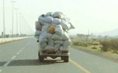 للأسف يتجاهل بعض السائقين القوانين المرورية التي تحافظ على سلامتهم وسلامة الطرقات، إذ نرى في الصورة أحد هؤلاء يحمل مركبته بأجولة أسمدة، ويسير على طريق مليحة في اتجاه المدام في الشارقة، لدرجة أن المركبة أصبحت شبه مخفية من الجهة الخلفية، لذا أتمنى من الجهات المعنية تغليظ المخالفات المرورية على مثل هؤلاء السائقين.