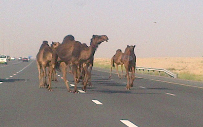 يعاني مرتادون لشارع الإمارات في دبي، باتجاه أبوظبي، وتحديداً بالقرب من مطار آل مكتوم، وجود جمال سائبة ترعى على جانبي الطريق، من دون راعٍ، وتفاجئ السائقين بعبور الطريق بشكل عشوائي، ما يربكهم، وقد يؤدي إلى وقوع حوادث مرورية، مناشدين الجهات المعنية ضرورة اتخاذ إجراءات تحول دون وصول الجمال إلى نهر الطريق، حرصاً على السلامة العامة، وحفاظاً على المشهد الحضاري للمدينة.