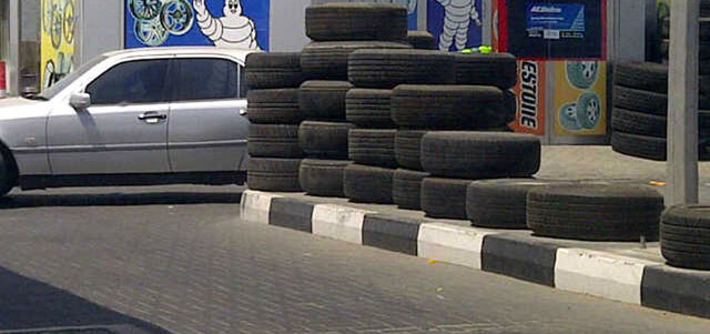 تعلن محال بيع إطارات السيارات عن نفسها، بوضع أعداد كبيرة من الإطارات المستعملة على الرصيف أمام المحل، للفت انتباه السائقين، الأمر الذي يشوه المنظر العام للمكان، ويعيق حركة سير المشاة على الأرصفة، لذا أرجو من الجهات المعنية في دبي والشارقة النظر في أمر محال بيع الإطارات، خصوصاً بالمناطق الصناعية، ومنع وضع الإطارات المستعملة على الأرصفة، واستبدالها بلوحات دعائية، حرصاً على جمال الشوارع.