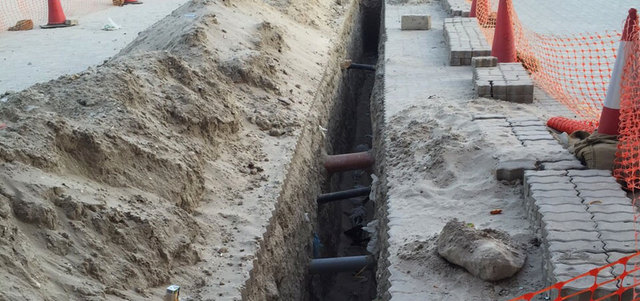 شكا سكان في بناية «ريزيدنس 8»، على شارع التعاون في الشارقة، حفر خندق منذ خمسة أسابيع بعمق متر ونصف المتر، وبطول نحو 10 أمتار أمام البناية، ولم يتم ردمه إلى الآن، لما يشكل من خطر على سلامة أبنائهم. وقالوا إن الخندق حفر بهدف تمديدات كهرباء، ولاتزال عدة الحَفْر ملقاة في الخندق، لافتين إلى أن الخندق مسور بشبك بلاستيكي فقط، ويقع على مدخل البناية تماماً، مطالبين الجهات المعنية بالنظر في هذا الأمر.