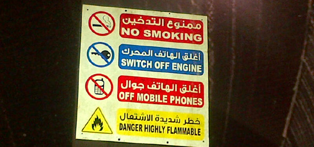 لوحة صغيرة، تتضمن تعليمات ضرورية يتعين الالتزام بها قبل الدخول إلى أحد المواقع الحساسة، لتلافي وقوع حريق. لكن، على الرغم من صغر اللوحة، فهي تكشف عن مشكلة كبيرة تتعلق بهويتنا الثقافية، إذ تتجلى الأخطاء في سطورها القليلة، كاشفة عن مدى حاجتنا إلى إطلاق حملة كبرى من أجل إعادة الاعتبار إلى اللغة العربية، بوصفها حاضنتنا الحضارية.