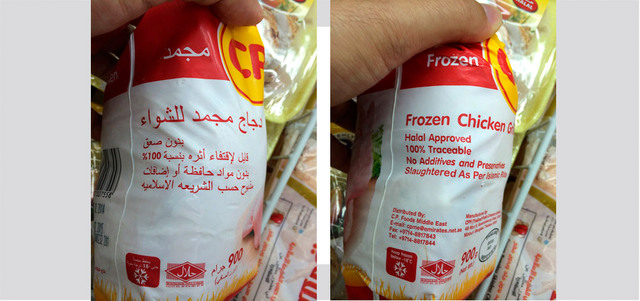مازلنا نرى بين فترة وأخرى أخطاء لغوية، رغم الحملات التي تنظمها الجهات الحكومية للحفاظ على اللغة العربية، وفي الصورة منتج مكتوباً عليه باللغة العربية (قابل لاقتفاء أثره) ترجمة لكلمة (Traceable) بدلاً من (خاضع للرقابة)، لذا نطالب الجهات المعنية في الدولة بوضع حل لهذه الأخطاء التي تشوه هوية اللغة العربية.