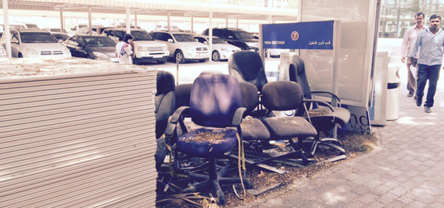 توجد كراسي مهملة ومتروكة منذ مدة أمام الواجهة الأمامية لإحدى الجهات الحكومية في الشارقة، من دون أن يتم نقلها إلى مكان آخر بواسطة الجهة المختصة، ما يُعد تشويهاً للمظهر الحضاري للإمارة، لذا أتمنى أن تتم إزالتها في أقرب وقت منعاً لحدوث مثل هذا الأمر مرة أخرى.