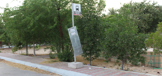 أصبحت لوحات انتظار الحافلات في ضواحي أبوظبي يسهل نقلها من مكان إلى آخر على طول الشارع، وبعض الركاب يضعونها في أماكن تريحهم كظل شجرة، ولأنها ليست مثبتة بشكل جيد فقد تسقط في عرض الطريق أمام السيارات في حال هبوب رياح شديدة، ما قد يتسبب في ارتباك السائقين ووقوع حوادث.