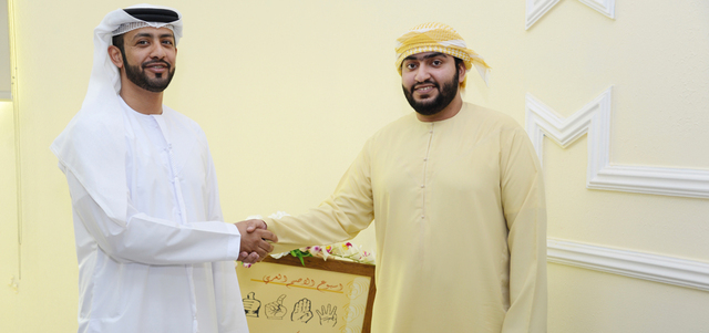 أفاد مدير إدارة مراكز وزارة الداخلية لتأهيل وتشغيل المعاقين، بالإدارة العامة لحماية المجتمع والوقاية من الجريمة في وزارة الداخلية، الرائد الدكتور خالد خلفان العامري، بأن الإدارة دربت 311 شخصاً على لغة الإشارة في 17 دورة نظمتها لمختلف قطاعات المجتمع والهيئات والمؤسسات في إطار المسؤولية المجتمعية ونشر ثقافة لغة الإشارة وسط أفراد المجتمع، لتسهيل عملية التواصل مع فئة الصم والبكم، وذلك منذ بداية عام 2012 وحتى الربع الأول من العام الجاري. وأكد أن هذه الدورات أثبتت نجاحها وحققت الأهداف المرجوة، وأسهمت في رفع قدرات الموظفين في التعامل مع فئة الصم وسرعة انجاز معاملاتهم في مختلف الدوائر والمؤسسات الحكومية والخاصة، لافتاً إلى أن عدد الصم في الإمارات يبلغ 500 شخص وفقاً لجمعية الصم في الدولة. وكانت إدارة مراكز وزارة الداخلية لتأهيل وتشغيل المعاقين، شاركت الاحتفال بأسبوع الأصم العربي الذي تم الاحتفال به هذا العام تحت شعار «فلنجعل القلم والكتاب صديقين للصم»، وذلك خلال الفترة من 20 إلى 26 أبريل الجاري. وكرّم العامري الطالب محمد فاضل سالم المنصوري، فئة الصم من الدفعة الـ28 للذكور التي تدرس حالياً في المراكز.