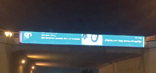 وضع إعلان تجاري تابع لإحدى المؤسسات، على جسر حلوان في الشارقة بصورة مقلوبة، ما سبب نوعاً من الاستغراب لدى المارة وسائقي السيارات، متسائلين عن سبب وضع الإعلان مقلوباً رأساً على عقب، وغير مفهوم للمارة، لذا أتمنى أن يتم تصحيح وضع الإعلان، حتى لا يشوه المنظر العام.