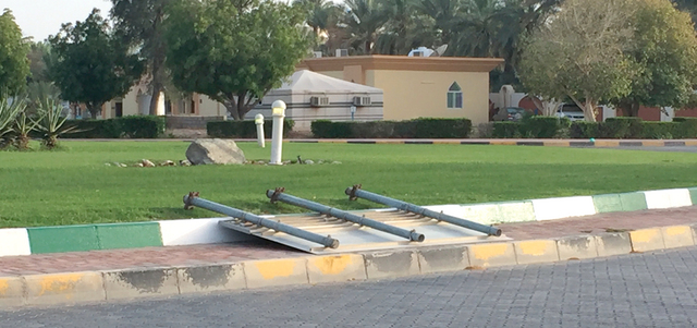 لافتة على دوار المصباح في منطقة هيلي، في العين، هوت على جانب الطريق منذ نحو أسبوعين، ولم تبادر الجهة المعنية إلى إصلاحها، على الرغم من أنها تمثل تشويهاً للمنظر العام.