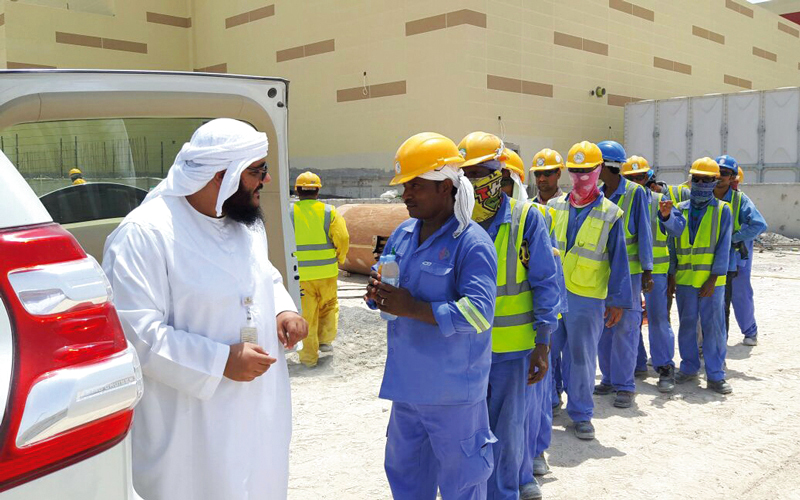 بلدية أبوظبي توزع المياه والعصائر على عمال «الشهامة»