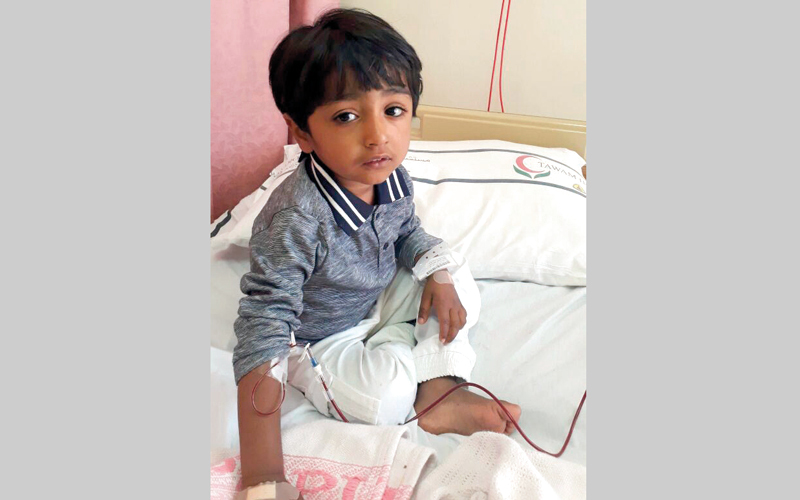 أسهم متبرعون بمبلغ 65 ألف درهم من إجمالي 250 ألفاً كلفة علاج الطفل «عبدالله» (ثلاث سنوات ــ باكستاني) الذي يعاني مرض الثلاسيميا.