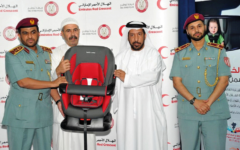 وزعت شرطة أبوظبي، بالتعاون مع هيئة الهلال الأحمر، كراسي جلوس الأطفال بالمركبات على المستفيدين من مبادرة «مقاعد الخير للأطفال»، ضمن استراتيجية عام الخير 2017، بهدف الحفاظ على سلامة النشء داخل المركبة.