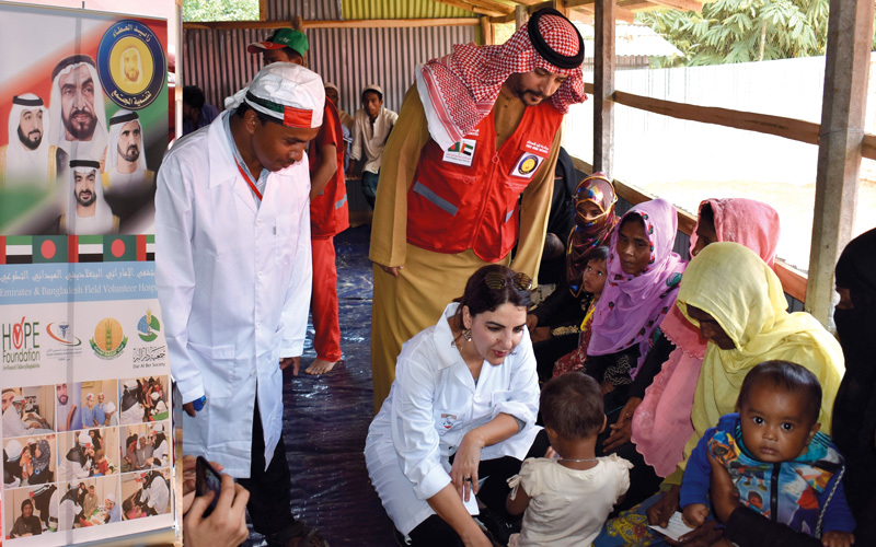 وشدد الرئيس التنفيذي لمبادرة «زايد العطاء» رئيس أطباء الإمارات، جراح القلب الدكتور عادل الشامري، على أهمية الخدمات الطبية المجانية للفرق الطبية التطوعية والمستشفى الميداني المتحرك لدعم ومساندة الوضع الإنساني المتدهور للاجئي الروهينغا الذين تُقدَّر أعدادهم اليوم بما يزيد على 800 ألف لاجئ.