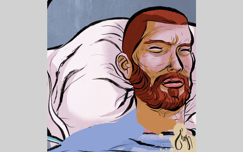 ويروي ابن المريض قصة معاناة والده مع المرض، قائلاً إن حالته الصحية تدهورت كثيراً منذ نحو عامين، إذ أصيب بضيق مفاجئ في التنفس ما أدى إلى فقدانه الوعي، فسارع ذووه في طلب سيارة الإسعاف له ونقله إلى المستشفى.