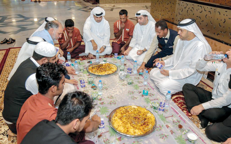 العمال شاركوا قيادات «قضاء أبوظبي» الإفطار. من المصدر