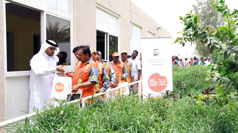 فريق بنك الإمارات للطعام وزع 1000 وجبة في سكن العمال بمنطقة «المحيصنة 2». من المصدر