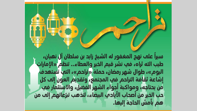 تكفل متبرع وجمعية تراحم الخيرية في دبي، بسداد 63 ألفاً و391 درهماً، كلفة جراحة استئصال كلى، وجزء من المثانة وعلاج كيماوي وإشعاعي للمريض (أبوهبة - سوداني - 61 عاماً)، الذي يعاني السرطان.