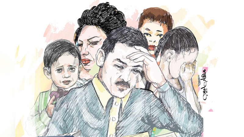وأضاف: «عدم استقرار وضعي في العمل انعكس سلباً على ظروفي المالية والمعيشية وعلى الاستقرار الأسري عموماً، لأنني المعيل الوحيد لأسرتي، ما أدى إلى تراكم الديون على عاتقي، ومنعني أيضاً من دفع الرسوم الدراسية لأبنائي الثلاثة نور وعلي ومشعل، وبقائهم في المنزل من دون دراسة، وأنا خائف جداً من حرمانهم مواصلة دراستهم مثل بقية الأطفال».