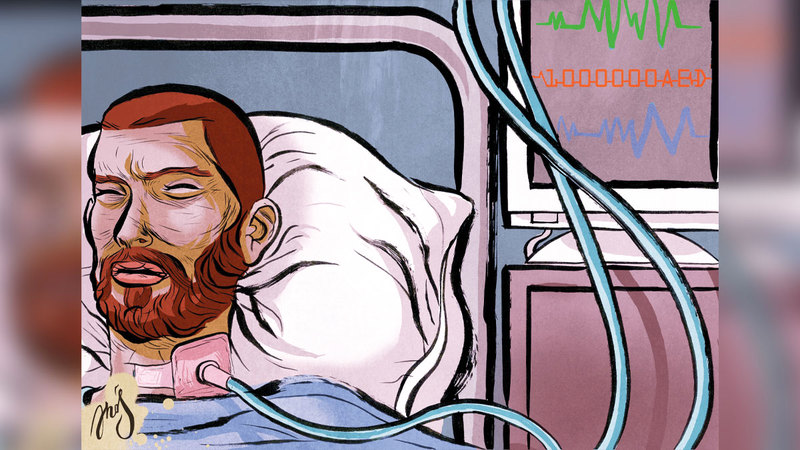 ويروي ابنه قصة معاناة والده مع المرض لـ«الإمارات اليوم»، قائلاً: «والدي يعيش على هذه الأرض الطيبة منذ سنوات طويلة، وقد أصيب قبل ثماني سنوات بجلطة دماغية، وأصبح مقعداً على كرسي متحرك وعاجزاً عن الحركة، كما أصيب بفشل كلوي وضعف في عضلة القلب وماء في الرئة وأمراض مزمنة منها السكري والكوليسترول، وكان يخضع للعلاج في مدينة الشيخ خليفة الطبية في أبوظبي، ولكن بعد إصابته بفشل كلوي وتدهور وضعه الصحي، قمنا بنقله إلى مدينة الشيخ شخبوط الطبية، لاستمرار تلقي العلاج بشأن كليتيه، ولايزال وضعه الصحي غير مستقر حتى الآن».