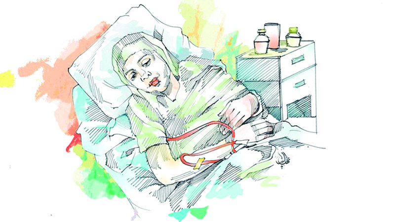 وروت «أم محمد» قصة معاناتها مع المرض، قائلة: «إن حالتي الصحية تدهورت كثيراً منذ سنوات عدة بسبب إصابتي بالتهاب الكبد، والفشل الكلوي، وقد خضعت لعملية زراعة كلية».