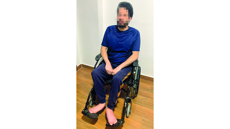 وروى المريض لـ«الإمارات اليوم» أنه أصيب بالشلل في طفولته المبكرة، بعد تعرضه لضعف في أعصابه الحركية، أدى إلى عدم قدرته على المشي.