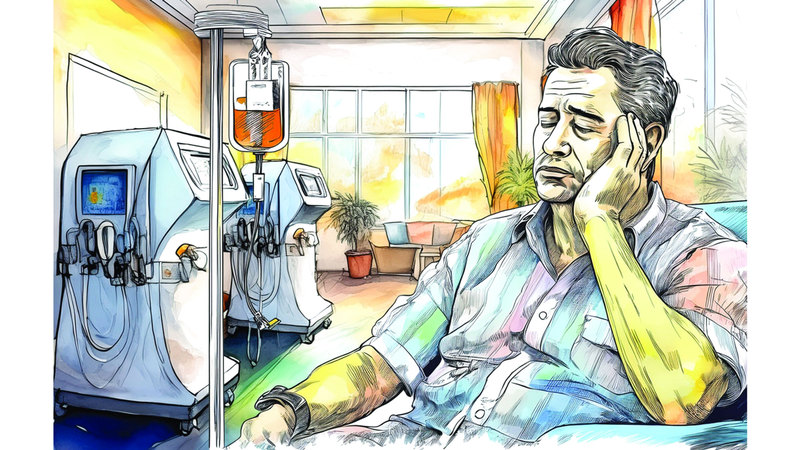 وأضاف: «في عام 2020 أصبت بفشل كلوي شديد، وأجريتُ عملية زراعة كلية لأن جلسات الغسيل الكلوي لم تُجدِ نفعاً مع حالتي، ومكثت في المستشفى أياماً عدة حتى تحسن وضعي الصحي»، وتابع: «بعدها عدت إلى الحياة بشكل طبيعي، واستمر ذلك لفترة قصيرة، وسرعان ما انتكست حالتي، حيث شعرت بألم في الرأس ونزول وزني بشكل لافت، فضلاً عن عجزي عن القيام بأي عمل، فقررت الذهاب إلى المستشفى للاطمئنان على حالتي الصحية».