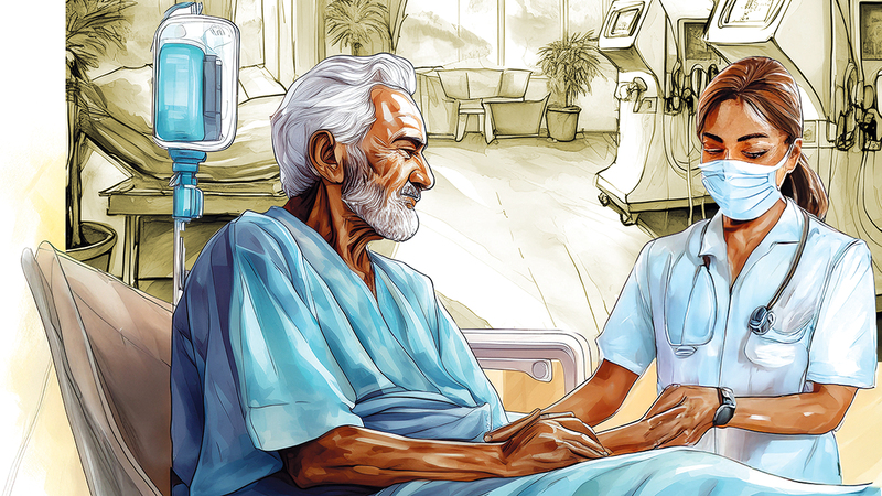 وأوضحت أن الطبيب نصحهم بإجراء جلسات غسيل كلوي، والالتزام بالخطة العلاجية الموصوفة، وإلا فسيتعرض لمضاعفات خطرة، فضلاً عن ضرورة تناول غذاء صحي للحفاظ على مناعته ومستوى السكر في الدم.
