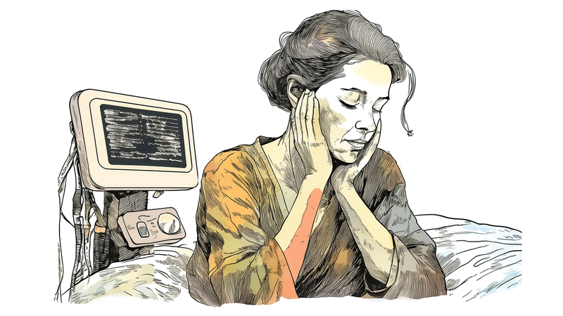 إمرأة مريضة على سرير العلاج، داخل غرفة عناية بالمستشفى