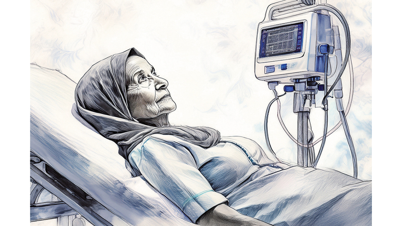 وأضاف «نتيجة الأشعة أظهرت أن لدى والدتي انسداداً شديداً في الشرايين، وأكد الطبيب ضرورة إجراء عملية قسطرة عاجلة لها، لوجود خطر على حياتها، وبعد إجراء العملية لها، مكثت والدتي فترة في المستشفى، وتحسنت حالتها الصحية، واستمر وضعها مستقراً، حتى شعرت فجأة بالتعب وضيق التنفس، فشعرنا بالخوف عليها، واتصلنا بسيارة الإسعاف لنقلها إلى المستشفى، وعند وصول والدتي إلى قسم الطوارئ أغمي عليها، وتم إنعاشها وإجراء الفحوص والأشعة لها، ليتبين أن لديها اضطراباً في عمل كهرباء القلب، بسبب عدم استجابة جسمها للأدوية التي تستخدمها، وطلب الطبيب منا إبقاءها أسبوعاً في قسم العناية المركزة».