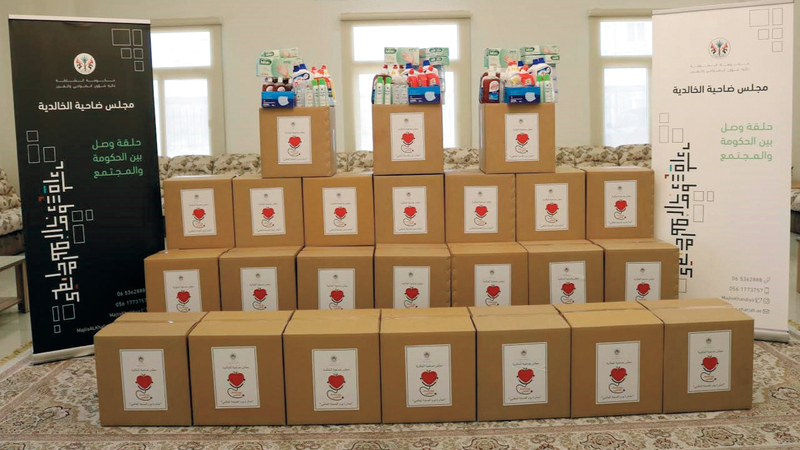 أطلق مجلس ضاحية الخالدية، بالتعاون مع جمعية الشارقة التعاونية، مبادرة صحية مجتمعية، لتزويد عدد من الأسر المتعففة من أهالي ضاحية الخالدية في الشارقة (سلة الوقاية)، التي تضم حزمة صحية من الكمامات والقفازات والمعقمات، خلال فترة الالتزام بالبقاء في المنزل، دعماً لتوجيهات الدولة بضرورة بقاء أفراد المجتمع في منازلهم، للحد من انتشار فيروس كورونا المستجد، حيث قام المجلس بإيصال «سلة الوقاية» للأسر المتعففة مع اتخاذ كل التدابير الاحترازية والوقائية أثناء التوزيع.