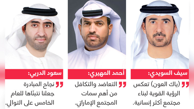 وقال: «من أهم سمات المجتمع الإماراتي التعاضد والتكافل في مختلف المحافل، وأن التعاون بين أفراد المجتمع قيمة راسخة»، مؤكداً مواصلة العمل مع الشركاء لتطوير المزيد من المبادرات الإنسانية، التي تستهدف سعادة كل أفراد المجتمع. وأكد ضرورة الاستفادة من التجارب السابقة بتفاعل أصحاب الخير من رجال الأعمال وأفراد المجتمع مع المبادرة، ليتم الإفراج عن أكبر عدد ممكن من المواطنين المتعثرين في قضايا مالية.