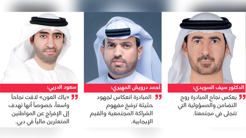 وكانت «الإمارات اليوم»، ومحاكم دبي، ودائرة الشؤون الإسلامية والعمل الخيري في دبي، أطلقت في الـ11 من مارس الجاري، المبادرة الإنسانية، «ياك العون 5»، بهدف إطلاق سراح المواطنين المتعثرين مالياً والملاحقين قضائياً في إمارة دبي، وتأتي تزامناً مع شهر رمضان وحلول عيد الفطر المبارك، وتُعدّ هذه المبادرة المجتمعية الوطنية الرائدة، ضمن مبادرات الصحيفة المجتمعية التي دأبت على إطلاقها منذ سنوات.