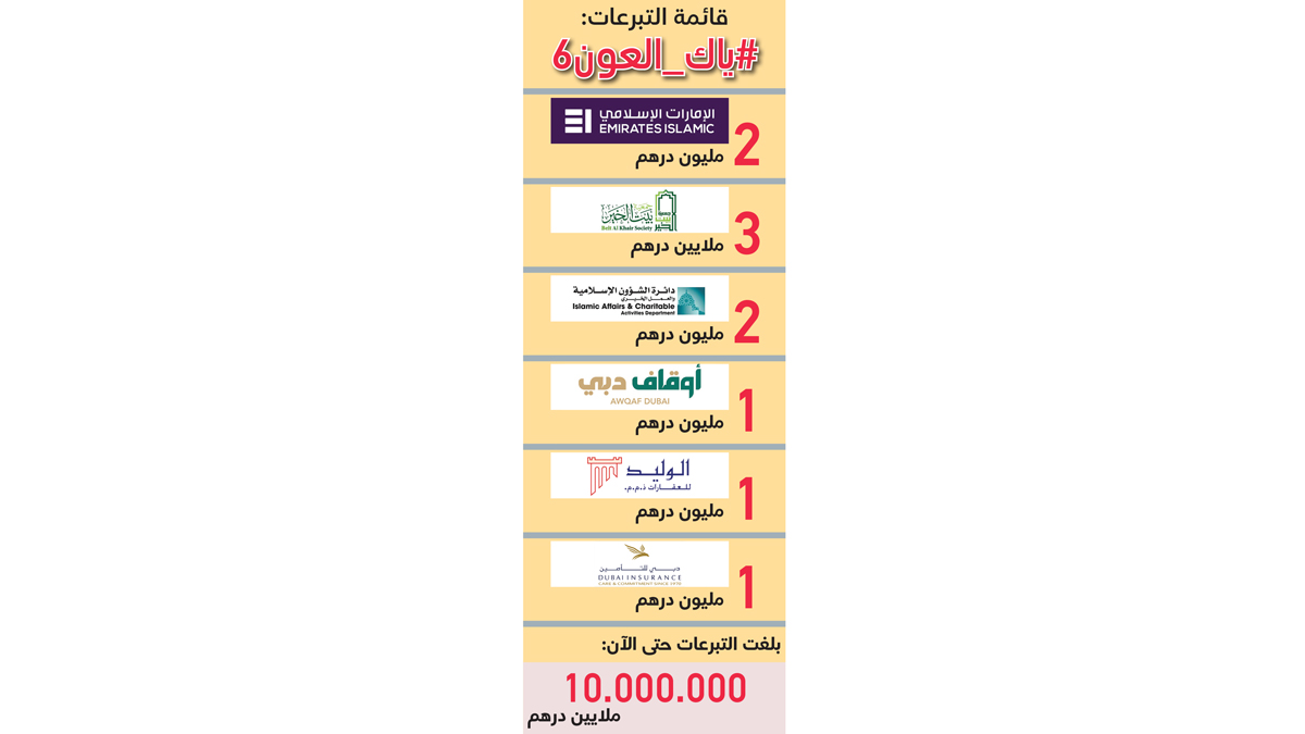 مليون درهم من «أوقاف دبي» دعماً لـ «ياك العون 6»