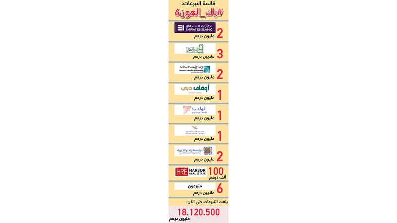 6.1 ملايين درهم من 7 متبرعين و«هاربور العقارية» دعماً لـ «ياك العون 6»