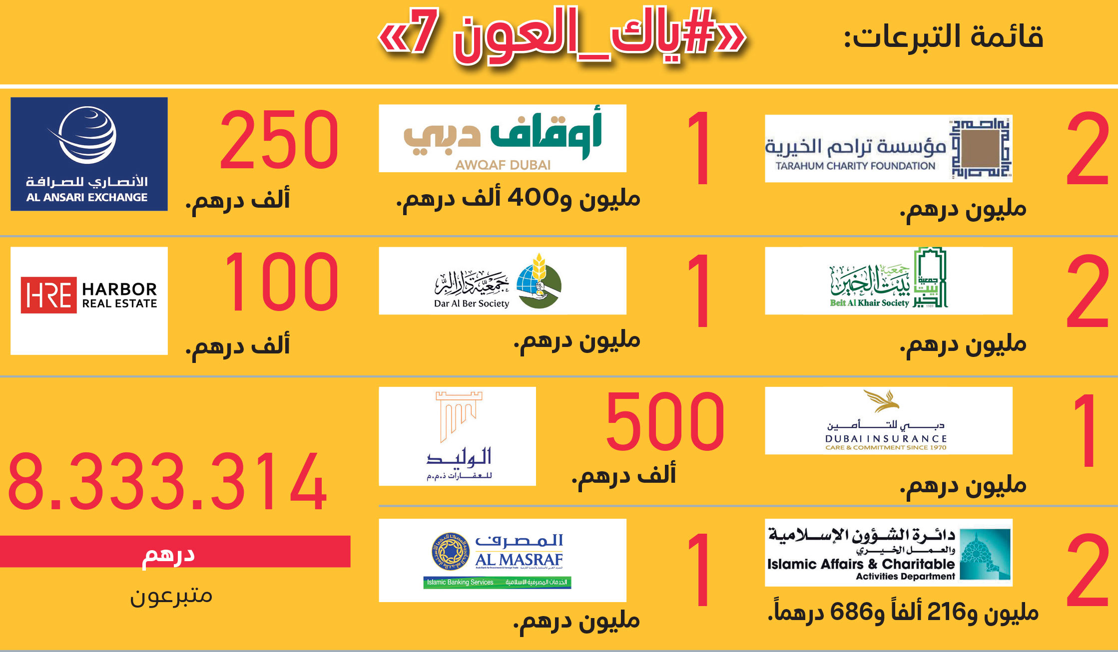 683 ألف درهم من «الأنصاري للصرافة» و«هاربور العقارية» ومتبرعين لـ «ياك العون 7»