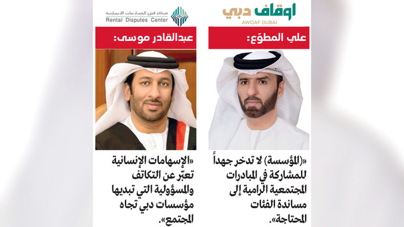 وأكد الأمين العام لمؤسسة الأوقاف وإدارة أموال القصّر في دبي، علي المطوّع، أن «المؤسسة» لا تدخر جهداً للمشاركة في المبادرات المجتمعية، الرامية إلى مساندة الفئات المحتاجة، لاسيما دعم الحالات الإنسانية المتعثرة في قضايا مالية.
