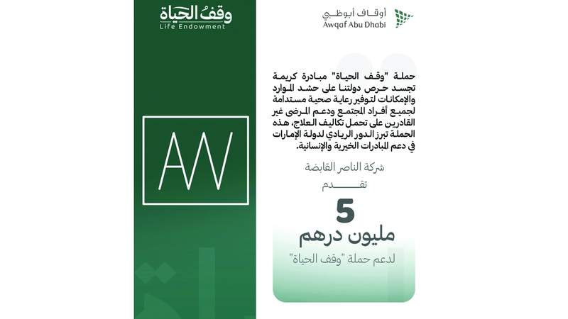 «الناصر القابضة» تدعم «وقف الحياة» بـ 5 ملايين درهم
