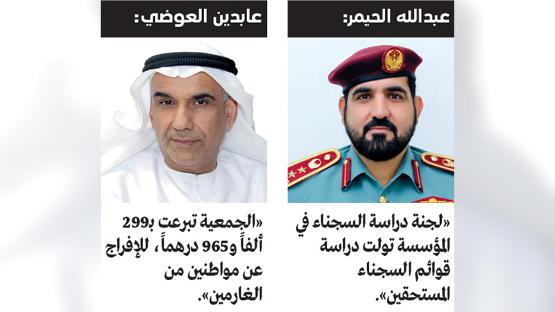 وقدم مدير إدارة المؤسسة العقابية والإصلاحية في رأس الخيمة، العقيد عبدالله محمد سعيد راشد الحيمر، الشكر للجمعية وبنك دبي الإسلامي والمتبرعين، مثمناً إسهامهم في الإفراج عن السجناء، ضمن الحملة الرامية إلى الإسهام في الإفراج عن أربعة سجناء مواطنين، مؤكداً أن «هذا ليس غريباً على شعب الإمارات، الذي يقف بجانب المحتاجين، خصوصاً السجناء الذين يقبعون في سجون الدولة».
