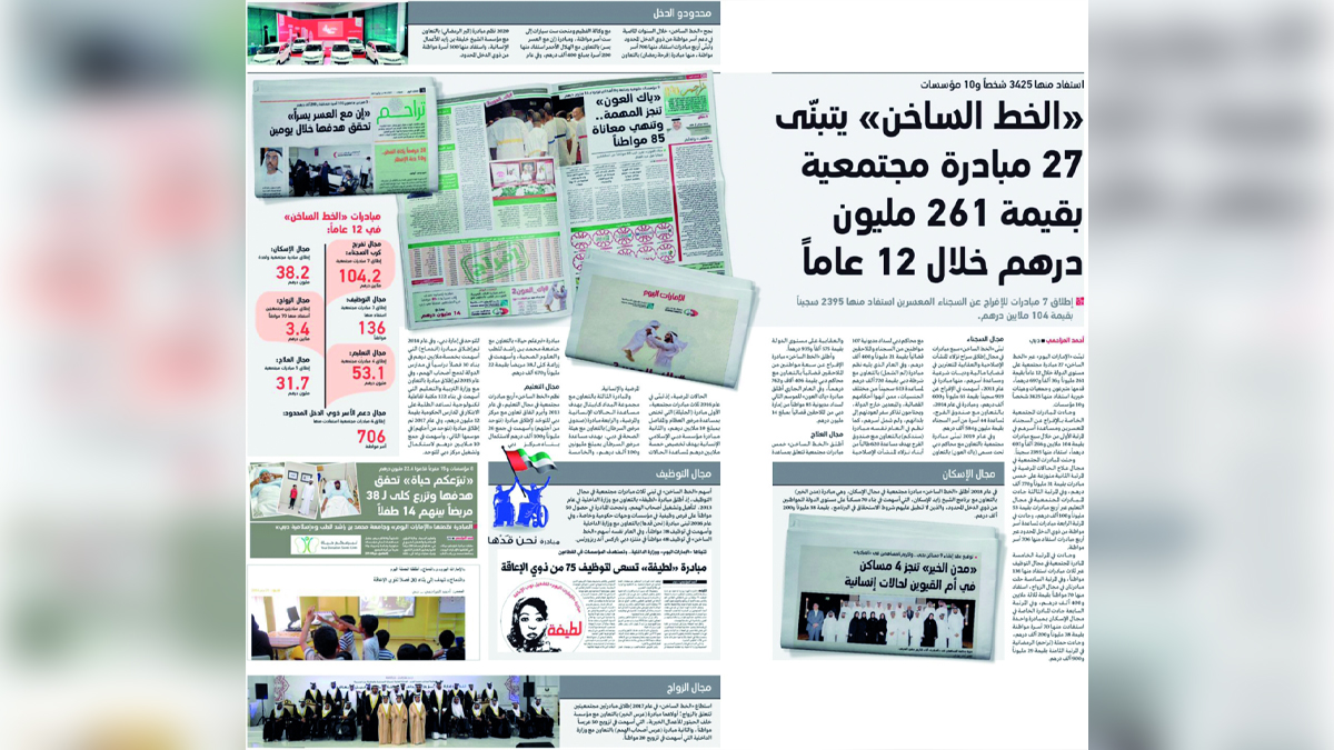 . تبنى «الخط الساخن» خلال الأعوام الماضية 29 مبادرة مجتمعية رائدة على مستوى الدولة بإجمالي تبرعات بلغت 318 مليون درهم.