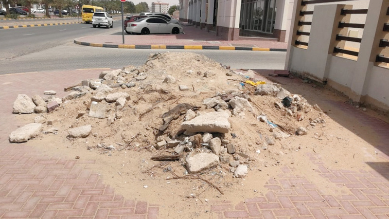 ركام من الرمل والحجارة على الرصيف، يعرقل سير مستخدميه. وعلى الرغم من تقديم شكاوى عدة خلال الشهرين الماضيين، فلا يزال الركام موجوداً في مكانه، كدليل على الإهمال. المطلوب إزالته وفتح الطريق أمام المشاة.