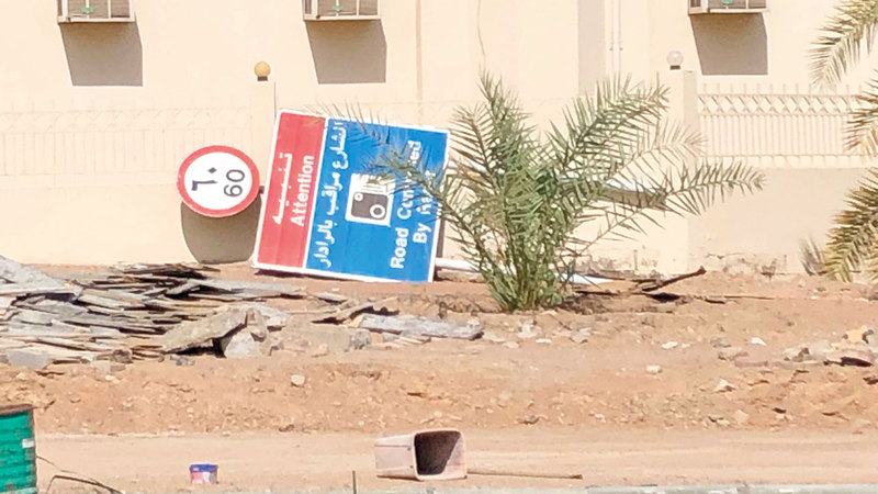 توجد لافتة إرشادية متروكة بجانب أحد أسوار مسجد «الطوية» الواقع على الطريق الممتد من دوار النباغ إلى شارع المطار في منطقة الطوية في العين، حيث توجد بهذا الوضع منذ فترة طويلة وتشوه منظر المكان، ولا تؤدي الغرض المراد منها.