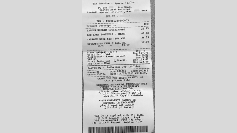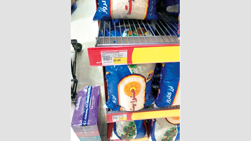 اشتريت أرز «صنوايت» من أحد المراكز التجارية في منطقة الخالدية بأبوظبي، وكان سعر المنتج على أرفف العرض 33.55 درهماً، وعند الذهاب إلى المحاسب (الكاشير) فوجئت بأن سعر المنتج عند الدفع مختلف عما هو معروض، إذ يبلغ سعره في الفاتورة 36.23 درهماً.