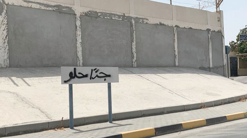 كتابة عبثية على لوحة إرشادية في منطقة الرفاع بإمارة الشارقة، وهي من الظواهر غير الحضارية التي تتسبب في تشويه الممتلكات العامة وإفساد الذوق العام.