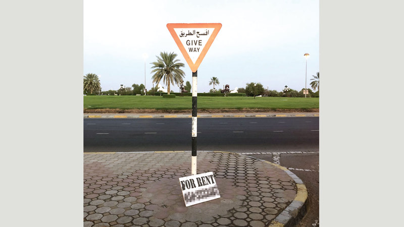 شخص ما وضع لافتة مكتوباً عليها للإيجار باللغة الإنجليزية، على إحدى اللافتات الموجودة على المخرج الرئيس لمستشفى توام بمدينة العين، والقريبة من الدوار الرئيس، في منظر عشوائي يشوه المنظر الحضاري، ويعطي انطباعاً سيئاً عن المكان، خصوصاً أن المستشفى يرتاده الكثيرون، وهذه اللافتة موجودة في مكانها منذ أكثر من أسبوع، دون أن تتم إزالتها من قبل الجهات المعنية.